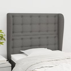 Tete de lit avec oreilles Gris fonce 83x23x118/128 cm Tissu