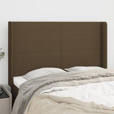 Tete de lit avec oreilles Marron fonce 147x16x118/128 cm Tissu