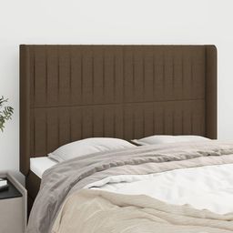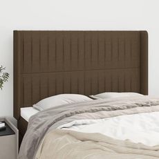 Tete de lit avec oreilles Marron fonce 147x16x118/128 cm Tissu