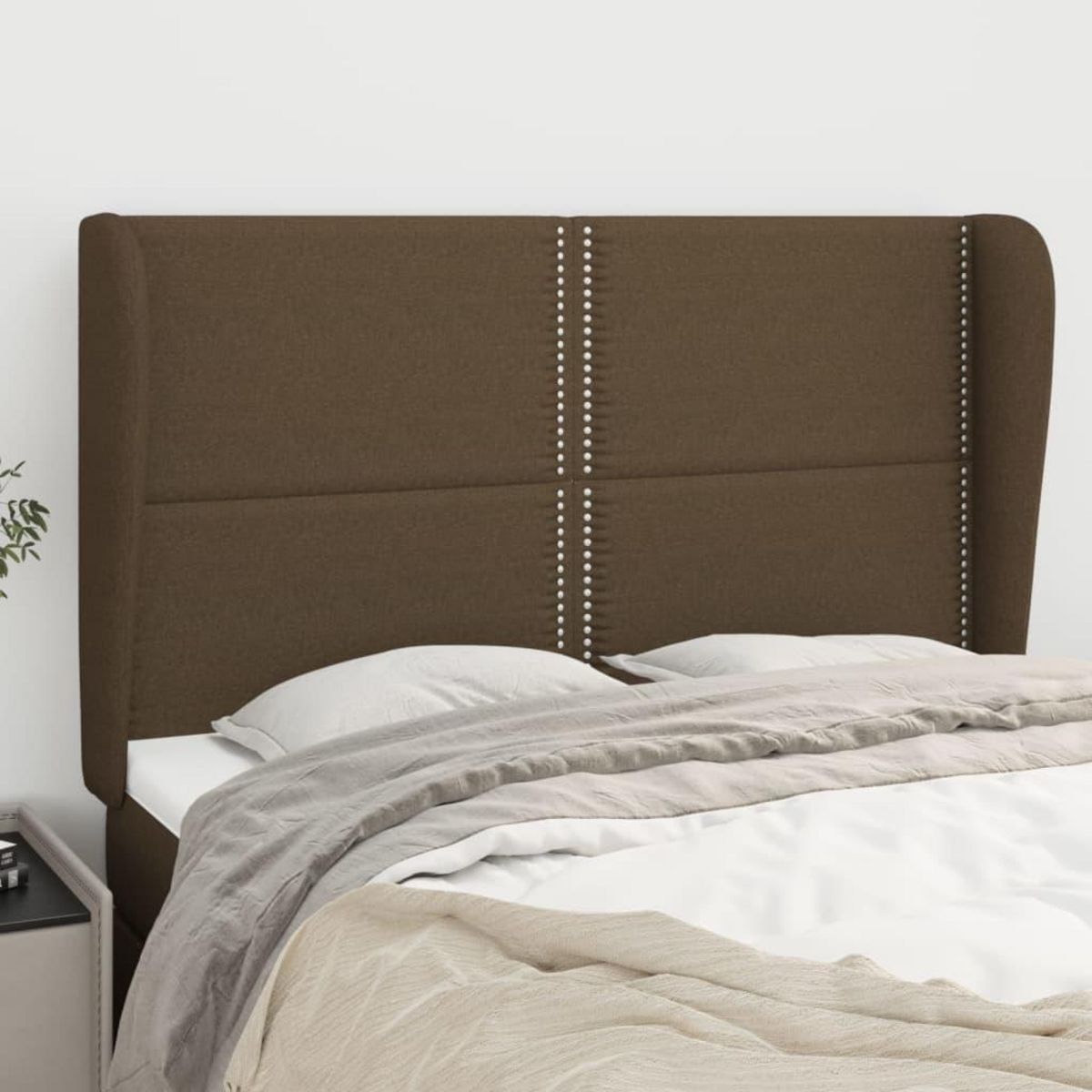 Tete de lit avec oreilles Marron fonce 147x23x118/128 cm Tissu