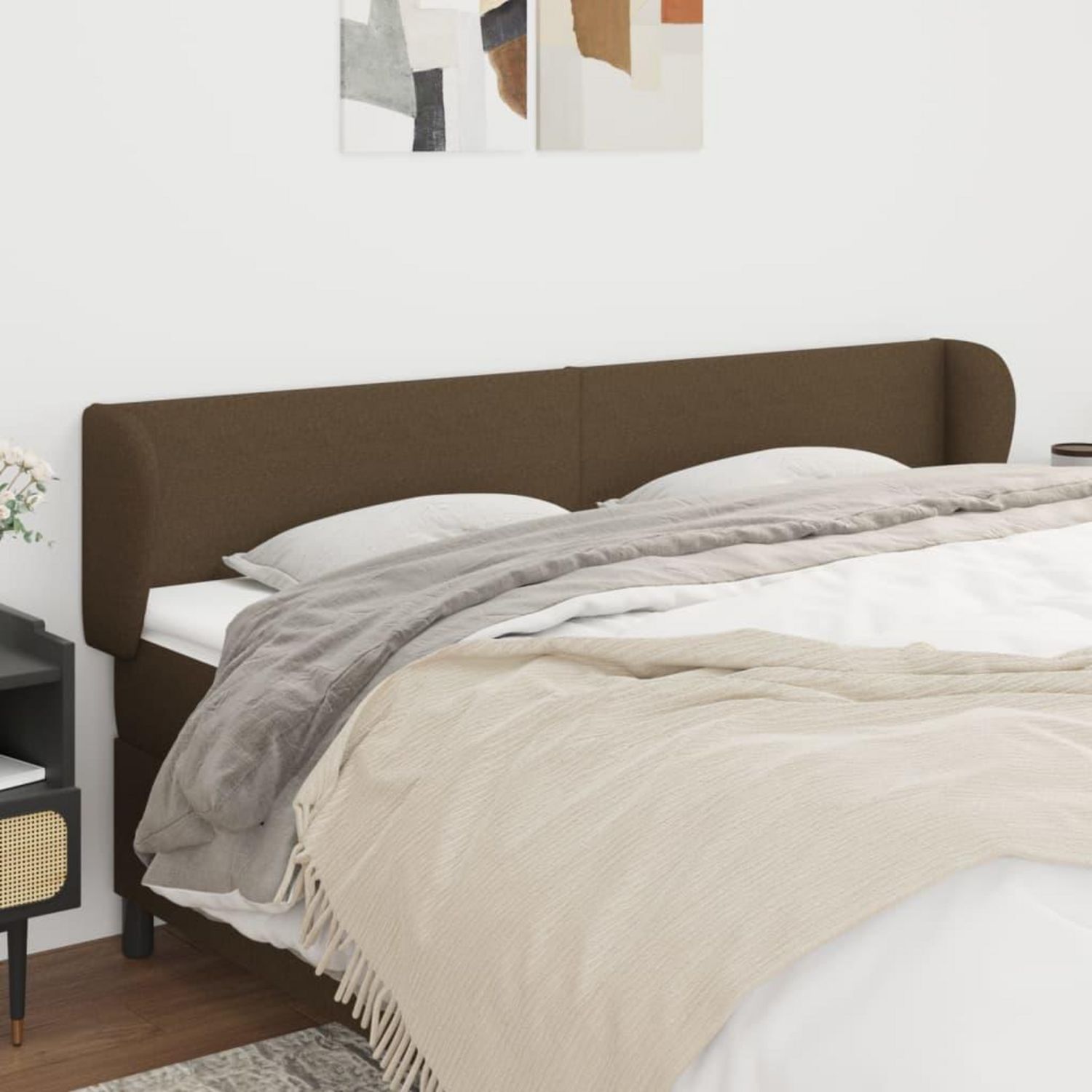 Tete de lit avec oreilles Marron fonce 203x23x78/88 cm Tissu