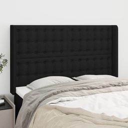 Tete de lit avec oreilles Noir 147x16x118/128 cm Tissu