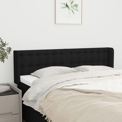 Tete de lit avec oreilles Noir 147x16x78/88 cm Tissu