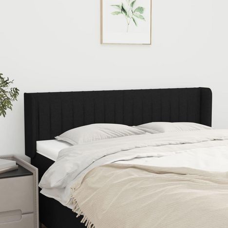 Tete de lit avec oreilles Noir 147x16x78/88 cm Tissu