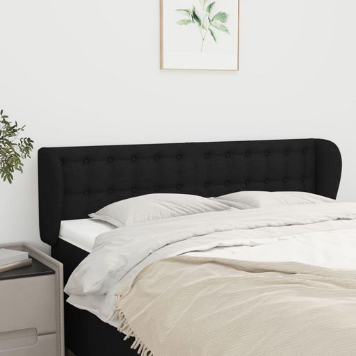 Tete de lit avec oreilles Noir 147x23x78/88 cm Tissu