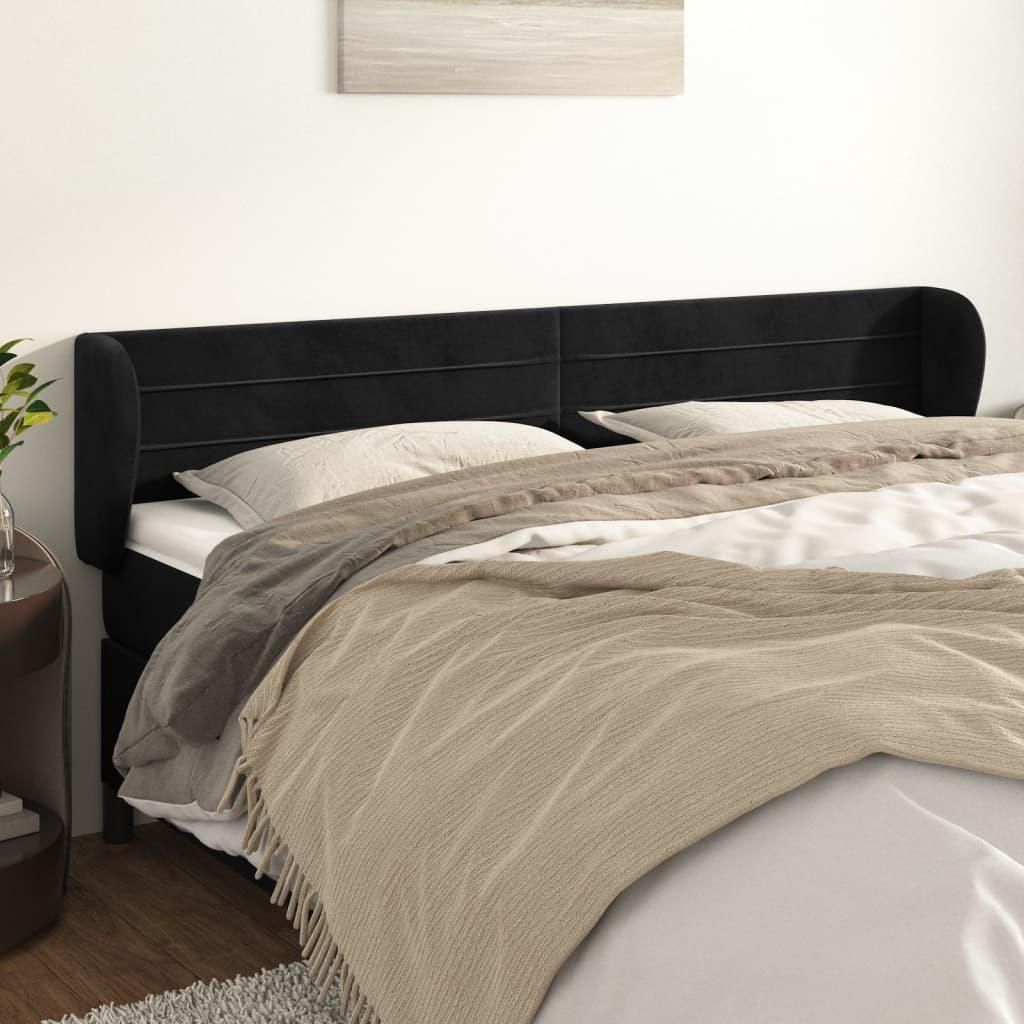Tete de lit avec oreilles Noir 163x23x78/88 cm Velours