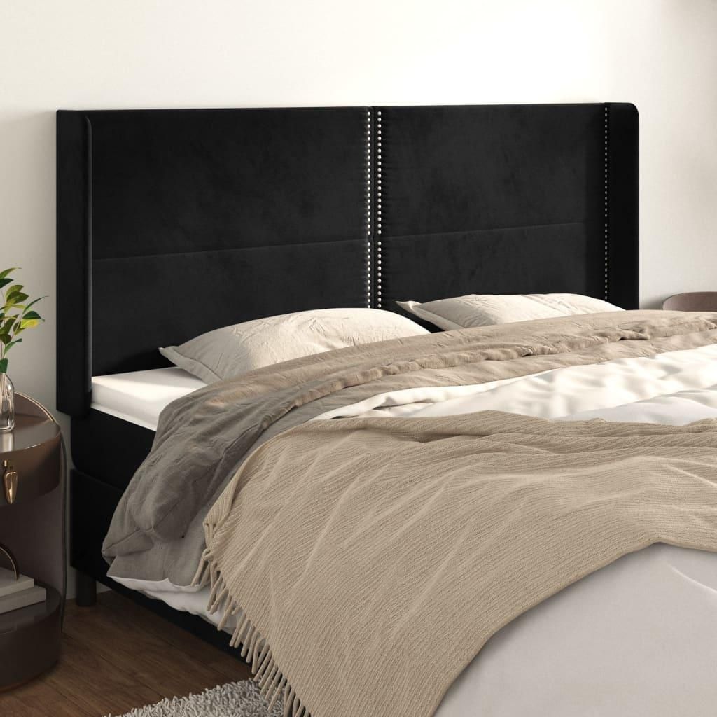 Tete de lit avec oreilles Noir 203x16x118/128 cm Velours