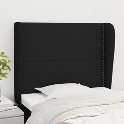 Tete de lit avec oreilles Noir 83x23x118/128 cm Tissu