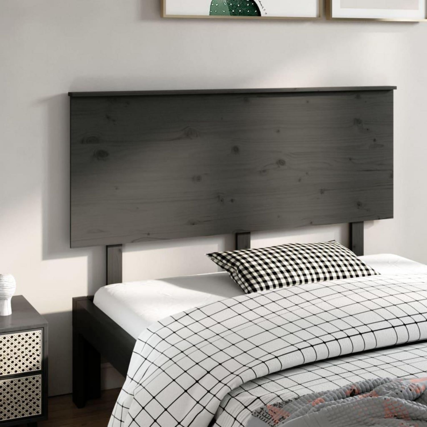 Tete de lit Gris 144x6x82,5 cm Bois massif de pin