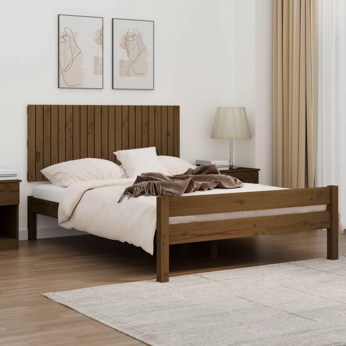 Tete de lit murale Marron miel 140x3x60 cm Bois massif de pin