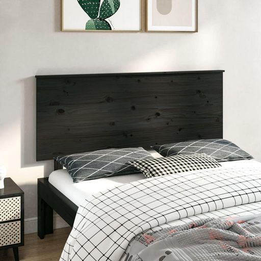 Tete de lit Noir 144x6x82,5 cm Bois massif de pin