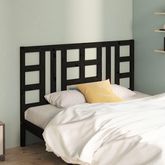 Tete de lit Noir 146x4x100 cm Bois massif de pin