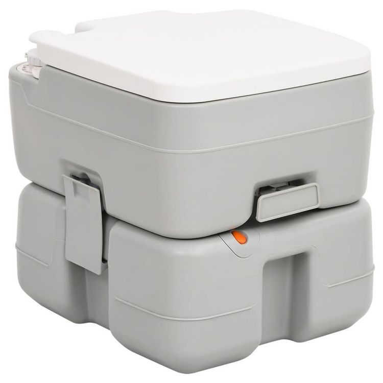 Toilette de camping portable gris et blanc 15+10 L PEHD