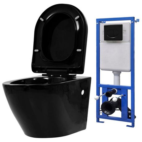 Toilette suspendue au mur avec reservoir cache Ceramique Noir