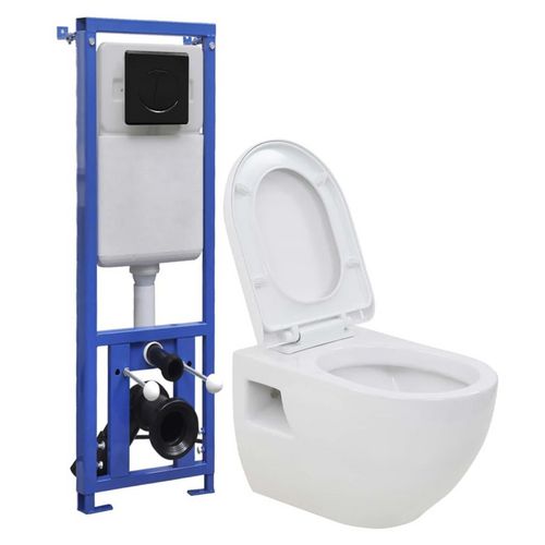 La toilette dispose d'un systeme de fermeture en douceur qui permet au couvercle de se fermer automatiquement et doucement par une simple pression du bout des doigts. Constituee d'une cuvette de toilette en ceramique et d'un couvercle necessitant peu d'entretien, cette toilette suspendue au mur est facile a nettoyer. Le reservoir de chasse encastre inclus est dote d'un systeme de double chasse (le plus petit bouton pour 3-4,5 L et le plus grand pour 6-9 L). Le reservoir d'eau en PEHD a une capacite de 11 litres et resiste a la corrosion et a la temperature.