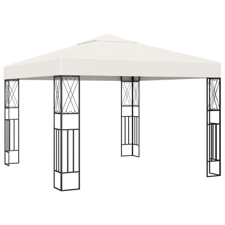 L'auvent ventile empechera le soleil et la pluie de gacher le plaisir lors des reunions de famille, des barbecues, des pique-niques l'apres-midi et des fetes d'anniversaire. Le belvedere a une construction en acier robuste avec des details en forme de croix decoratifs et un toit en polyester. L'auvent peut etre facilement fixe au cadre en acier.