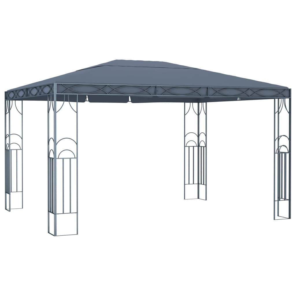 Le toit, compose de 100 % polyester avec peinture PA, vous protege des rayons UV nocifs. La tonnelle est solidement construite en acier resistant et est par consequent resistante a la rouille et tres stable. Des attaches a boucles et a crochets sont egalement incluses pour faciliter la fixation.