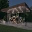 L'auvent ventile empechera le soleil et la pluie de gacher le plaisir lors des reunions de famille, des barbecues, des pique-niques de l'apres-midi et des fetes d'anniversaire. La tente de fete a une construction en acier robuste avec des details carres decoratifs et un toit en polyester. L'auvent a des coins renforces et des attaches auto-agrippantes avec lesquelles il se fixe facilement au cadre de la tonnelle. De plus, la guirlande lumineuse cree une ambiance chaleureuse dans votre jardin lorsque le soleil se couche. Les lumieres n'apportent aucune pollution a l'environnement car elles sont chargees par l'energie solaire pendant la journee.