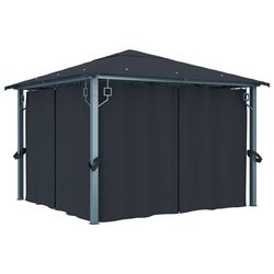 Tonnelle avec rideau 300x300 cm Anthracite Aluminium