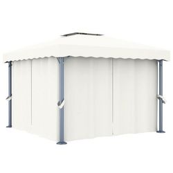 Tonnelle avec rideau 3x3 m Blanc creme Aluminium
