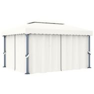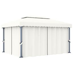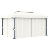 Tonnelle avec rideau 4x3 m Blanc creme Aluminium