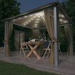 Tonnelle avec rideau et lumieres LED 3x3 m Taupe Aluminium