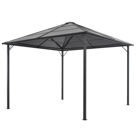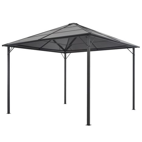 Le toit est constitue de panneaux de PC resistants aux UV de 6 mm d'epaisseur et vous protegera de la lumiere et des rayons UV nocifs du soleil. Le cadre robuste est solidement construit en aluminium et en acier resistants a la rouille. Des attaches a boucles et a crochets sont egalement incluses pour une fixation et un montage faciles de la tonnelle.