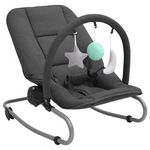 En savoir +Donnez à votre bébé le confort dont il a besoin et donnez une pause à vos bras avec ce transat pour bébé ! Cette balançoire pour bébé, dotée d'un cadre en acier, est robuste et durable. Elle dispose d'un dossier et d'un repose-pied réglables pour répondre aux besoins du bébé. Le harnais à 3 points intégré offre également à l'enfant une sécurité optimale. Ce transat peut être utilisé en position fixe ou comme balancelle, ce qui peut contribuer à apaiser votre bébé lorsque vous êtes occupé. De plus, la barre à jouets suspendue permet de tenir le bébé occupé et de l'amuser. Couleur : anthraciteMatériau : acier, tissu de linDimensions : 77 x 44 x 58 cm (l x P x H)Comprend une barre à jouetsComprend un coussin d'entrejambeHarnais à 3 pointsRepose-pied et dossier réglablesArticle basculant et fixeAssemblage requis : Non Avertissement Ne jamais laisser l>enfant sans surveillance. Il est dangereux d>utiliser ce berceau incliné sur une surface surélevée, par exemple une table. Ce berceau incliné n>est pas conçu pour des périodes de sommeil prolongées. Toujours utiliser le système de retenue. N>utilisez pas le berceau incliné une fois que votre enfant peut s>asseoir sans aide. Ce berceau incliné n>est pas conçu pour des périodes de sommeil prolongées. Le produit nécessite d>être assemblé par un adulte. Attacher ce jouet hors de la portée de l>enfant. Afin d'éviter tout risque d'étranglement, ôter le jouet dès que l'enfant tente de se mettre à quatre pattes ou de ramper. Ne laissez jamais l'enfant sans surveillance. N'utilisez jamais ce produit sur une surface élevée (par ex., une table). Utilisez toujours le système de fixation. Le produit convient aux enfants jusqu'à ce qu'ils essaient de s'asseoir. Cessez d'utiliser le produit quand l'enfant commence à essayer de s'asseoir. Ne laissez jamais l'enfant dormir dans ce produit. Ce produit ne remplace ni un berceau ni un lit d'enfant. Si l'enfant s'endort, il doit être alors placé dans un berceau ou lit d'enfant adapté. N'utilisez pas le produit si un élément est cassé ou manquant. N'utilisez pas d'accessoires ou de pièces de rechange autres que ceux approuvés par le fabricant. GPSRCouleur : anthraciteMatériau : acier, tissu de linDimensions : 77 x 44 x 58 cm (l x P x H)Comprend une barre à jouetsComprend un coussin d'entrejambeHarnais à 3 pointsRepose-pied et dossier réglablesArticle basculant et fixeAssemblage requis : Non