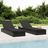 - Set complet comprenant deux transats et une table en résine tressée noire.