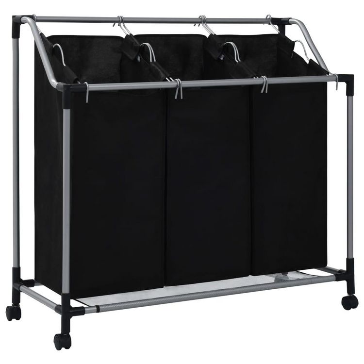 Imaginez a quel point il est pratique de garder vos vetements sales ranges et de les transporter facilement dans votre buanderie, notre trieuse de linge conviviale vous le permet ! Cette trieuse de buanderie organise bien votre buanderie ou garde-robe, ce qui en fait le choix ideal pour repondre a vos besoins individuels. Elle presente trois sacs de tri qui peuvent etre facilement retires pour transporter le linge a l'aide des poignees en acier.