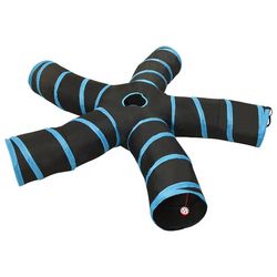 Tunnel pour chats a 5 voies Noir et bleu 25 cm Polyester