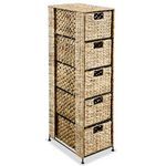 Elle a 5 tiroirs pour fournir un grand espace de stockage pour toutes sortes d'objets. L'unite de stockage se compose d'un cadre en metal et de jacinthe d'eau, qui la rendent vigoureuse et durable. Le style tisse attrayant ajoute au charme rustique de l'armoire.