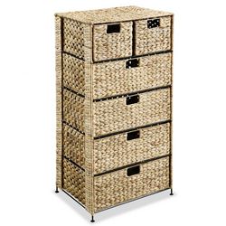Elle a 6 tiroirs pour fournir un grand espace de stockage pour toutes sortes d'objets. L'unite de stockage se compose d'un cadre en metal et de jacinthe d'eau, qui la rendent vigoureuse et durable. Le style tisse attrayant ajoute au charme rustique de l'armoire.