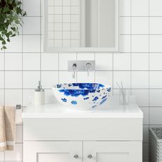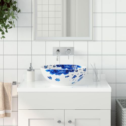 Vasque a poser blanc et bleu rond Φ41x14 cm ceramique