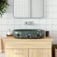 Vasque a poser bleu ovale 59x40x14 cm ceramique