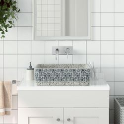 Vasque a poser gris/bleu rectangulaire 46x35,5x13 cm ceramique