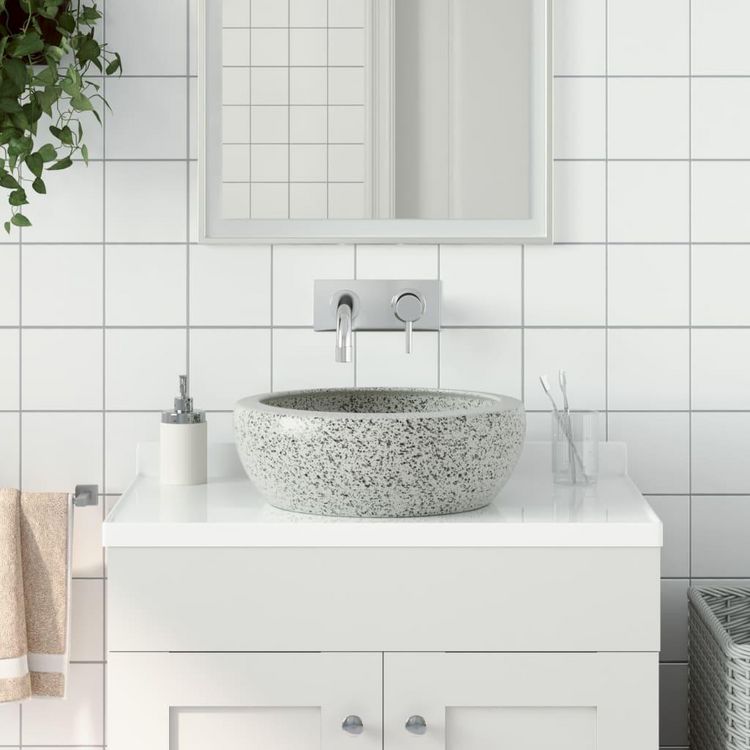 Vasque a poser gris rond Φ41x14 cm ceramique