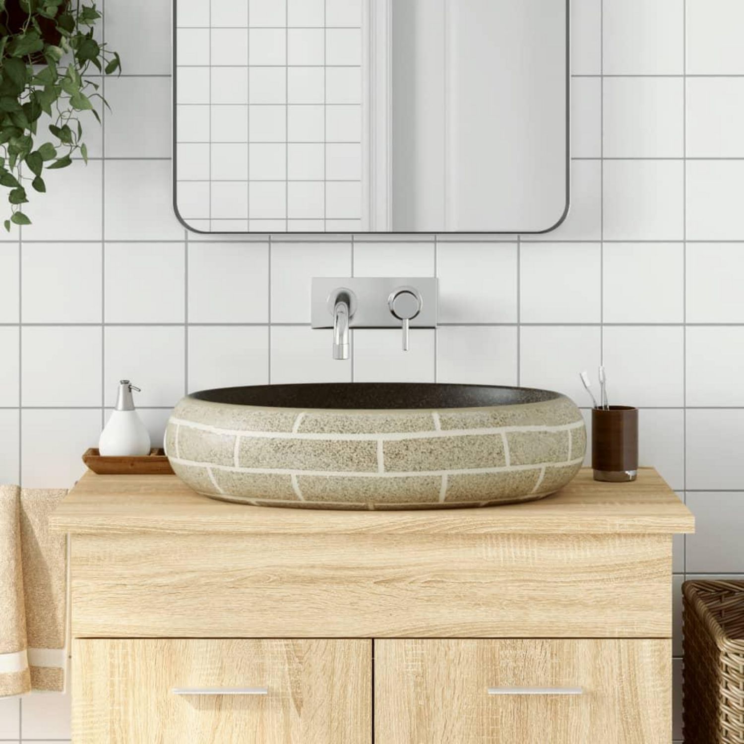 Cette vasque a poser est un supplement chic et intemporel a toute salle de bain, toilettes ou salle d'eau. Materiau durable : l'evier de salle de bains, fabrique en ceramique, presente une surface durable qui resiste aux chocs, aux taches et aux rayures, assurant ainsi sa brillance durable.Motifs at