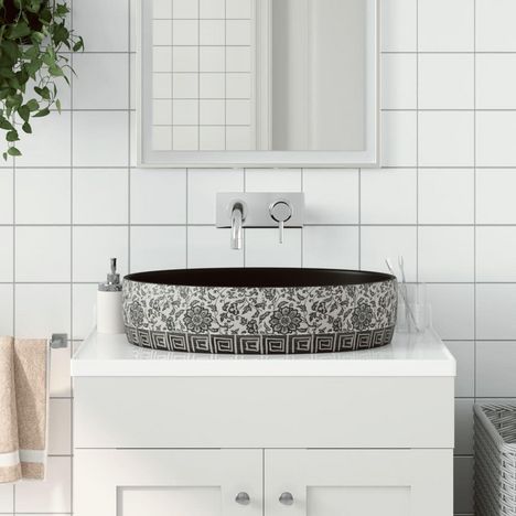 Cette vasque a poser est un supplement chic et intemporel a toute salle de bain, toilettes ou salle d'eau. Materiau durable : l'evier de salle de bains, fabrique en ceramique, presente une surface durable qui resiste aux chocs, aux taches et aux rayures, assurant ainsi sa brillance durable.Motifs at