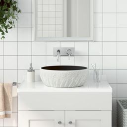 Cette vasque a poser est un supplement chic et intemporel a toute salle de bain, toilettes ou salle d'eau. Materiau durable : l'evier de salle de bains, fabrique en ceramique, presente une surface durable qui resiste aux chocs, aux taches et aux rayures, assurant ainsi sa brillance durable.Motifs at