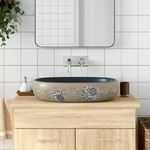 Vasque a poser sable et bleu ovale 59x40x14 cm ceramique