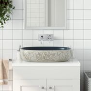 Vasque a poser sable et bleu ovale 59x40x14 cm ceramique