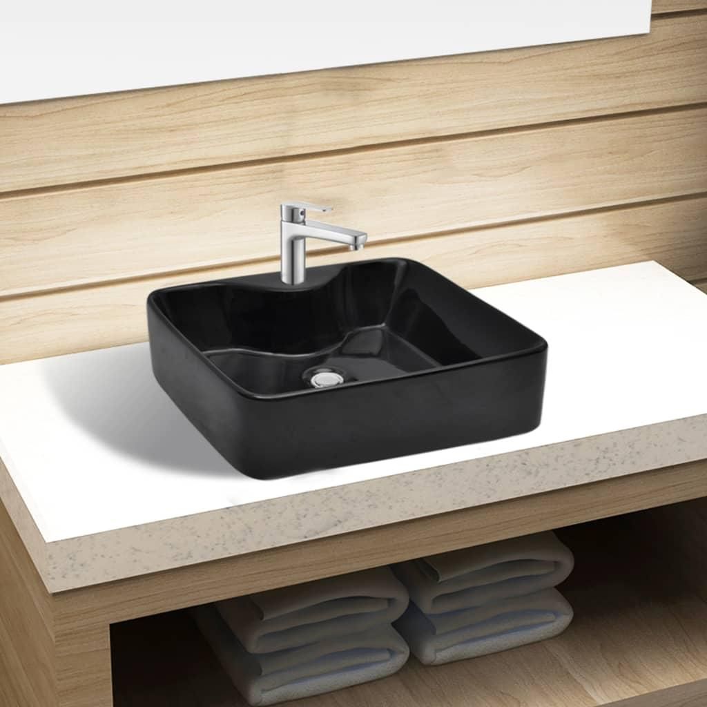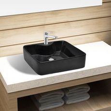 Vasque carree a trou pour robinet ceramique Noir pour salle de bain