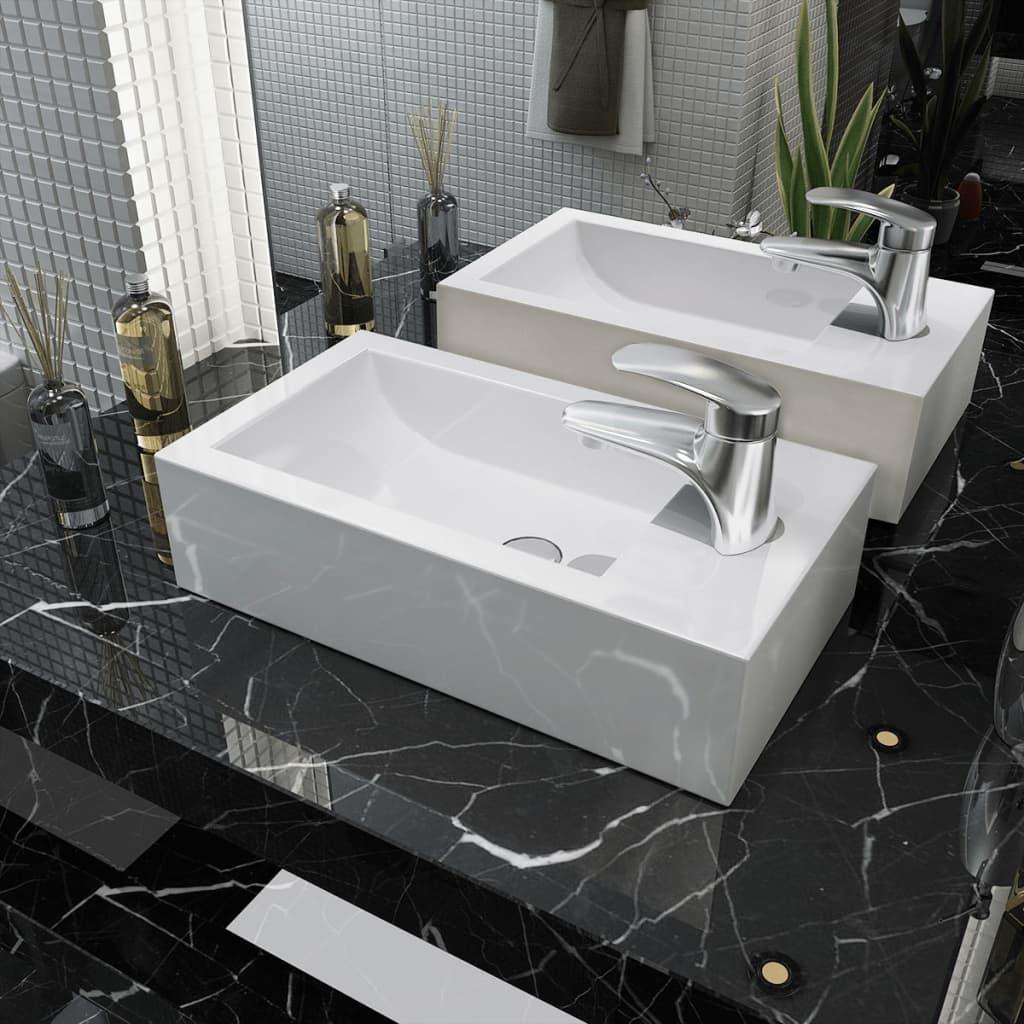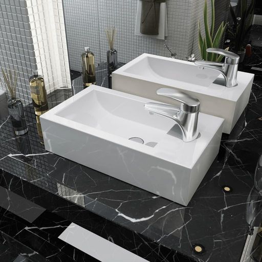 Vasque + trou de robinet Ceramique Blanc 46 x 25,5 x 12 cm