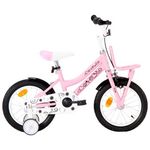 Vélo enfant avec porte bagages avant 14 pouces Blanc et rose