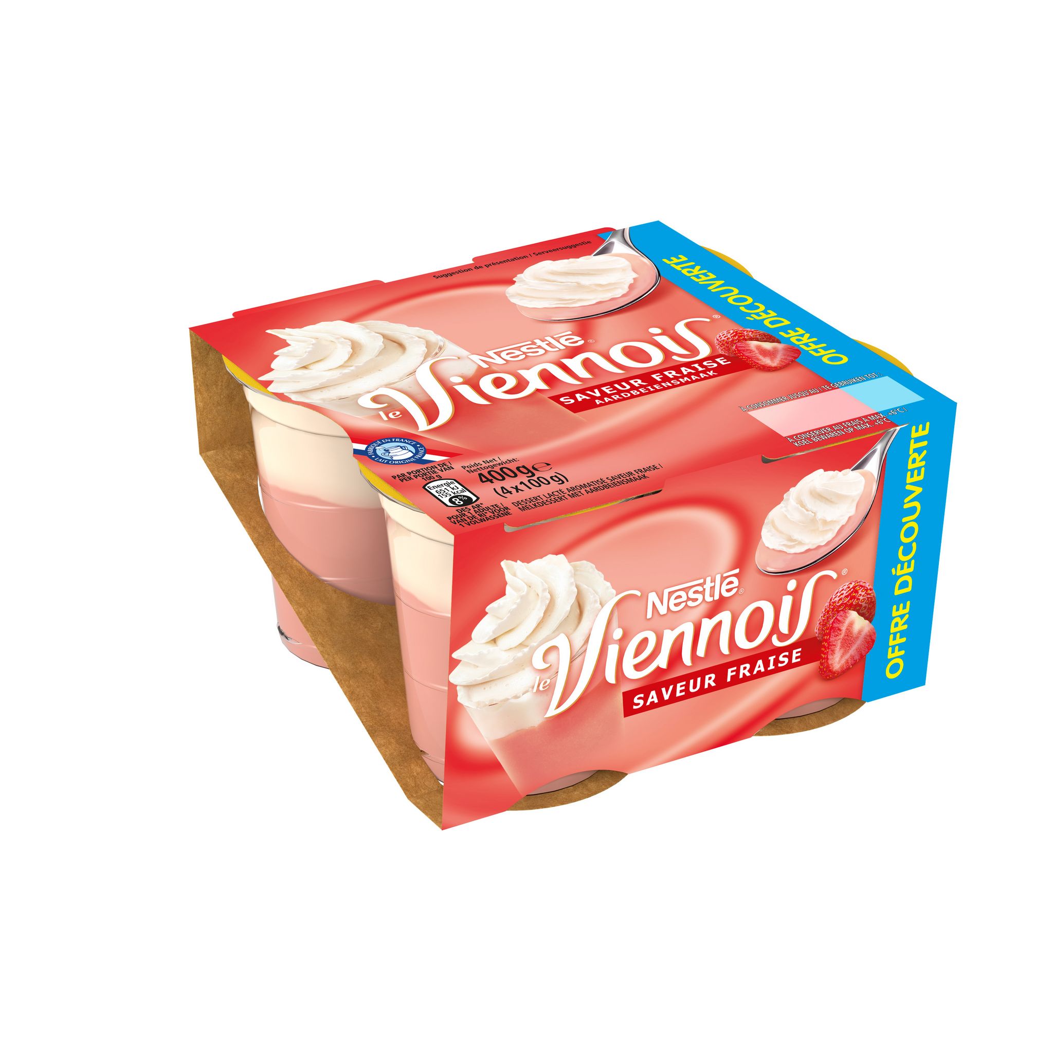 Le Viennois de Nestlé, c'est l'alliance parfaite entre une onctueuse crème dessert et un délicat tourbillon fouetté. C'est un dessert liégeois fabriqué en France avec du lait origine France.
