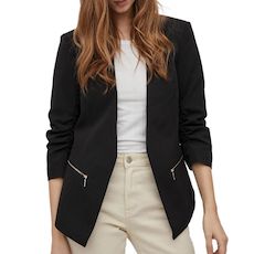 Craquez pour la veste blazer de la marque VILA ! Coloris : Noir Blazer à manches 3/4 Blazer ouvert Deux fausses poches zippées sur les côtés Tissu léger Composition : 95% Polyester, 5% Élasthanne