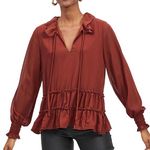 Blouse pour femme de la marque Vila tendance et fluide !- Manches longues- Tissu fluide- Coloris : Terracotta- Volants sur le bas de la blouse- Doublure- Composition : 100% polyester
