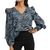 Craquez pour la blouse femme de la marque Vila Manches longues Col V Imprimé léopard Coloris : Bleu/Noir Volants sur les manches Composition : 100% polyester