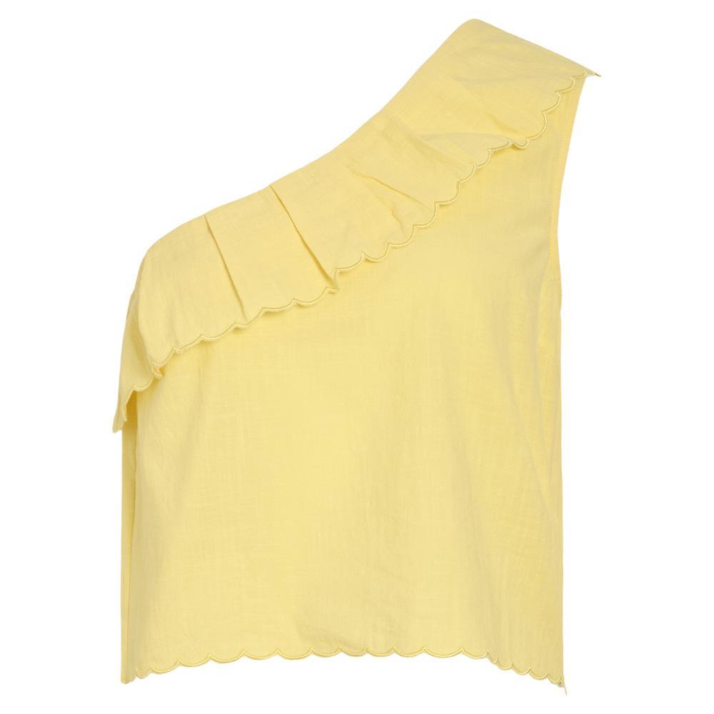 Optez pour ce débardeur VILA à prix bas !Couleur unieCotonAsymétriqueBroderieVolantPlisPince de poitrineOurlet en forme de vagueCoutures ton sur tonComposition : 100% Coton